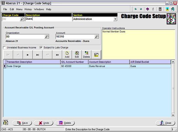 Below is an example of a common Charge Code -- for Dues: