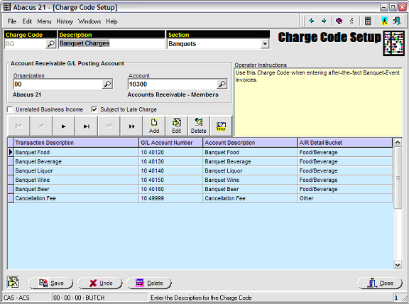 Assign the Organization and Account to be used for the G/L Posting to Accounts Receivable (for this Charge Code).