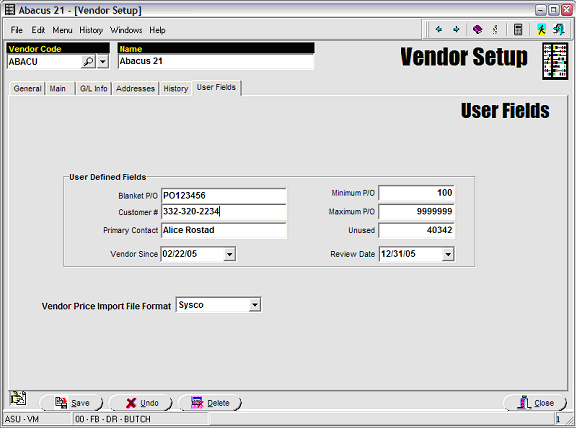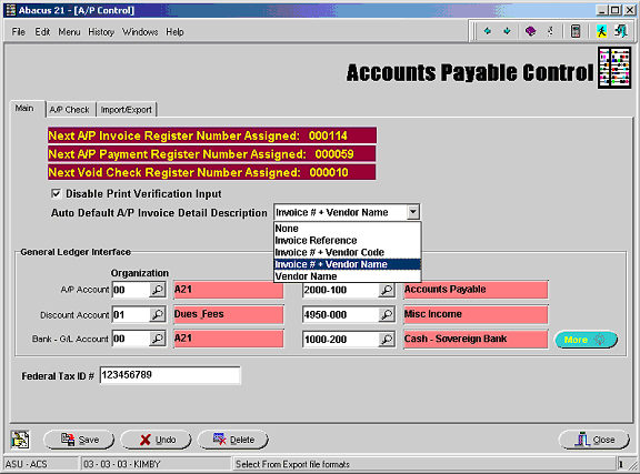 Abacus 21's standard (default) format is what you get if you do nothing... and accept what the A/P control presents on the screen.