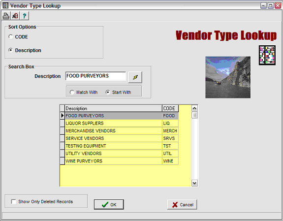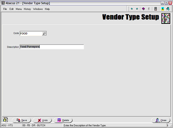 This option allows for the classification of Vendors or Purveyors (i.e. Food & Beverage, Retail, Etc.).