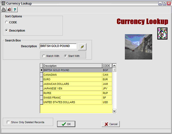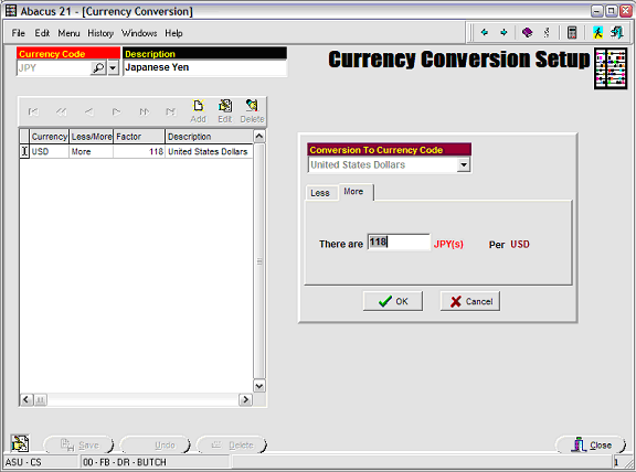 Allows the User to set a Currencies (and conversion rates) -- that can later be applied to Vendors-Purveyors.