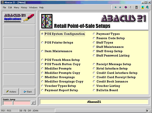In this sample, the Shift4 Retail Interface is used. (Abacus 21 also supports SDC's Protobase.)