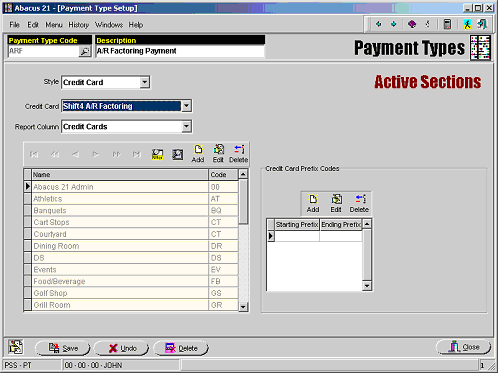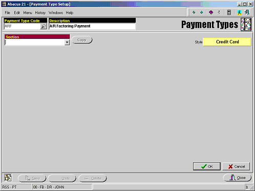 After the Payment Type has been defined, a Section must be set up for this Payment Type to be used with the A/R Factoring process.