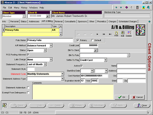 Input the Client ID to modify. In this sample we will change the setups for Member 33333-000 to utilize the A/R Factoring payment process.