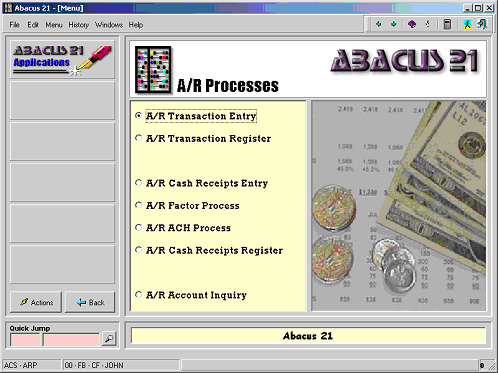 From the ARP menu, select the “A/R Cash Receipts Register” option: