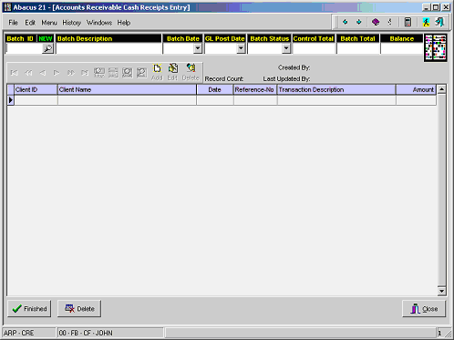 Select the “A/R Cash Receipts Entry” option from the menu to verify the information that has been posted properly to the Member accounts.