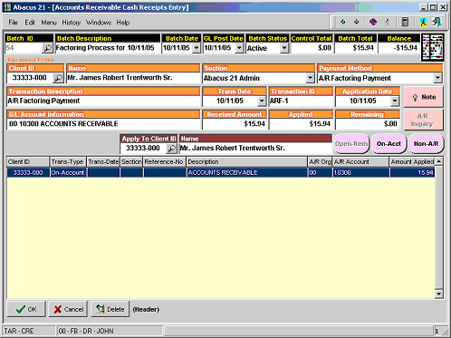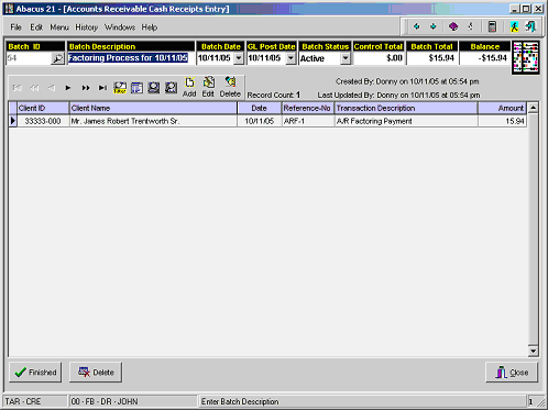 After printing the final Register and inputting the Verification ID (if activated), the A/R Factoring Payments will be updated to the Member A/R accounts.