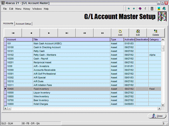 This program allows the User to set up G/L Master Accounts -- to be later (selectively) attached to respective Organization Codes for which they are appropriate.
