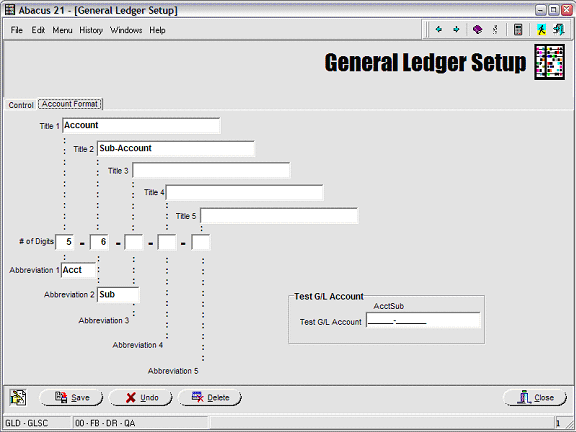Test G/L Account - Enter an Account here to see how it will be segmented in accordance with the Account Format.