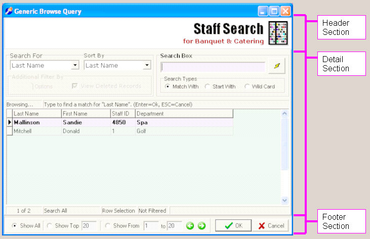 When the GBQ dialog first opens there it may not have any records selected or it may have automatically performed a “browse all” to prepare for an incremental search. (Incremental search will be covered later.)