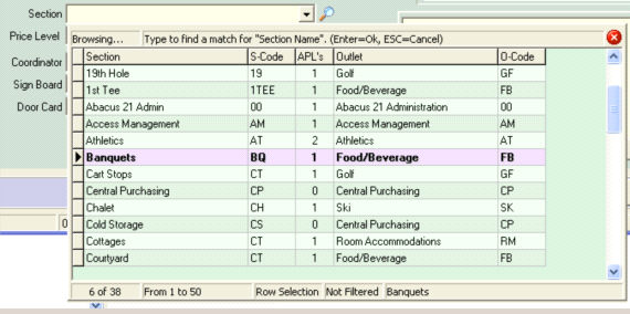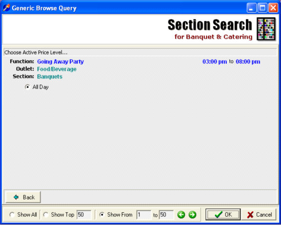 For Section searches Banquet & Catering will bring you to a sub-selection for Price Level.