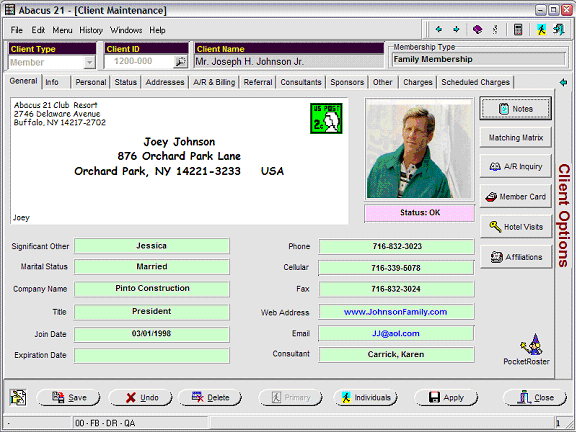 Pictured below is the Client Maintenance screen (Application: Member-Client, Juncture: Client-Member), with Member 1200-000 selected: