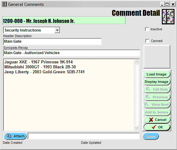 Note that it is also possible to create more than one comment of a particular Comment Type, for example, adding a Security Instructions Comment of a different variety: