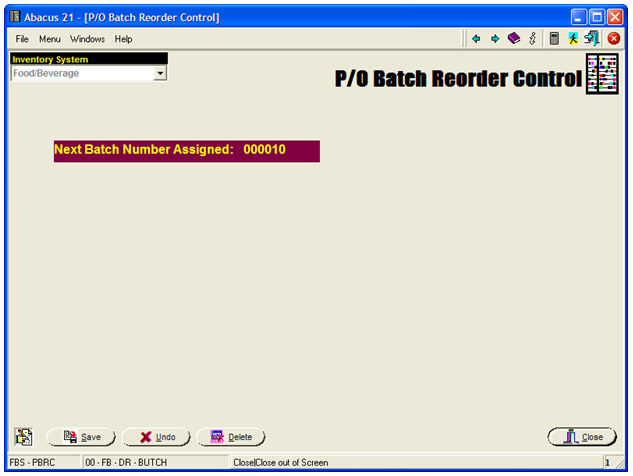 This screen merely shows the Next Batch Number (to be) Assigned (automatically) by the System when a Re-Order Batch is created.