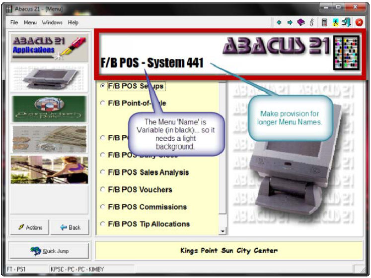 There are a variety of Images throughout the Abacus 21 system, for example: