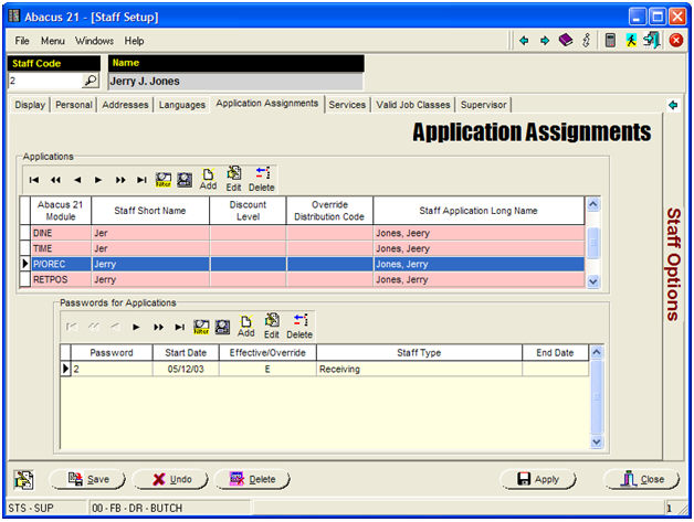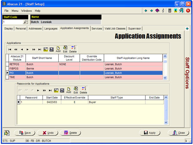 Buyer & Receiver Staff Setup (not on the above Menu; done within Staff Maintenance)