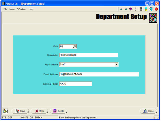 External Payroll (Department): The equivalent Payroll-System 'Department' to be associated with the Abacus Department.