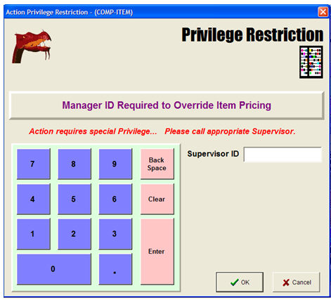 If the Privilege for "Allow Override of Item Price" is 'M', they will encounter the following 'Dragon' message: