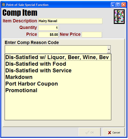 ... and the Manager (or Server) can make pick the appropriate Comp-Reason... and change the Price appropriately (as shown in the previous example).